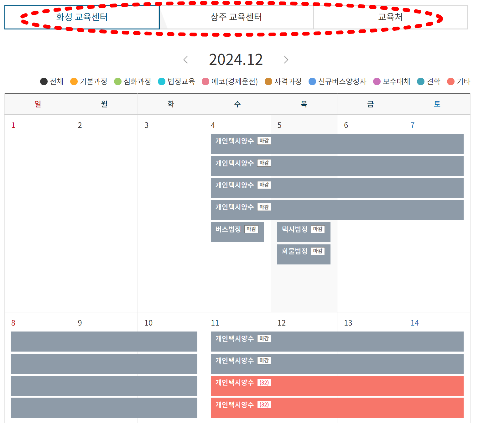 개인택시를 운영하려는 분들이 많아 교육 일정이 금방 마감되는 경우가 많습니다.