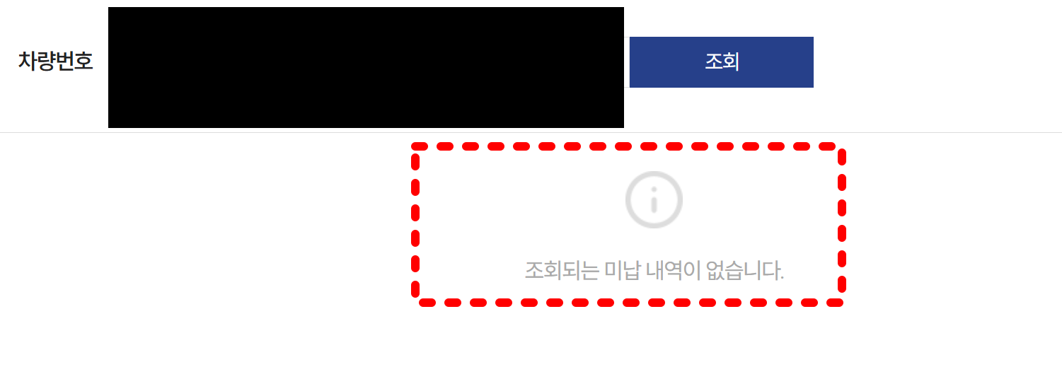 차량 번호를 입력했을때 미납 내역이 없다고 나오면, 연체된 내용은 없는 것 입니다.