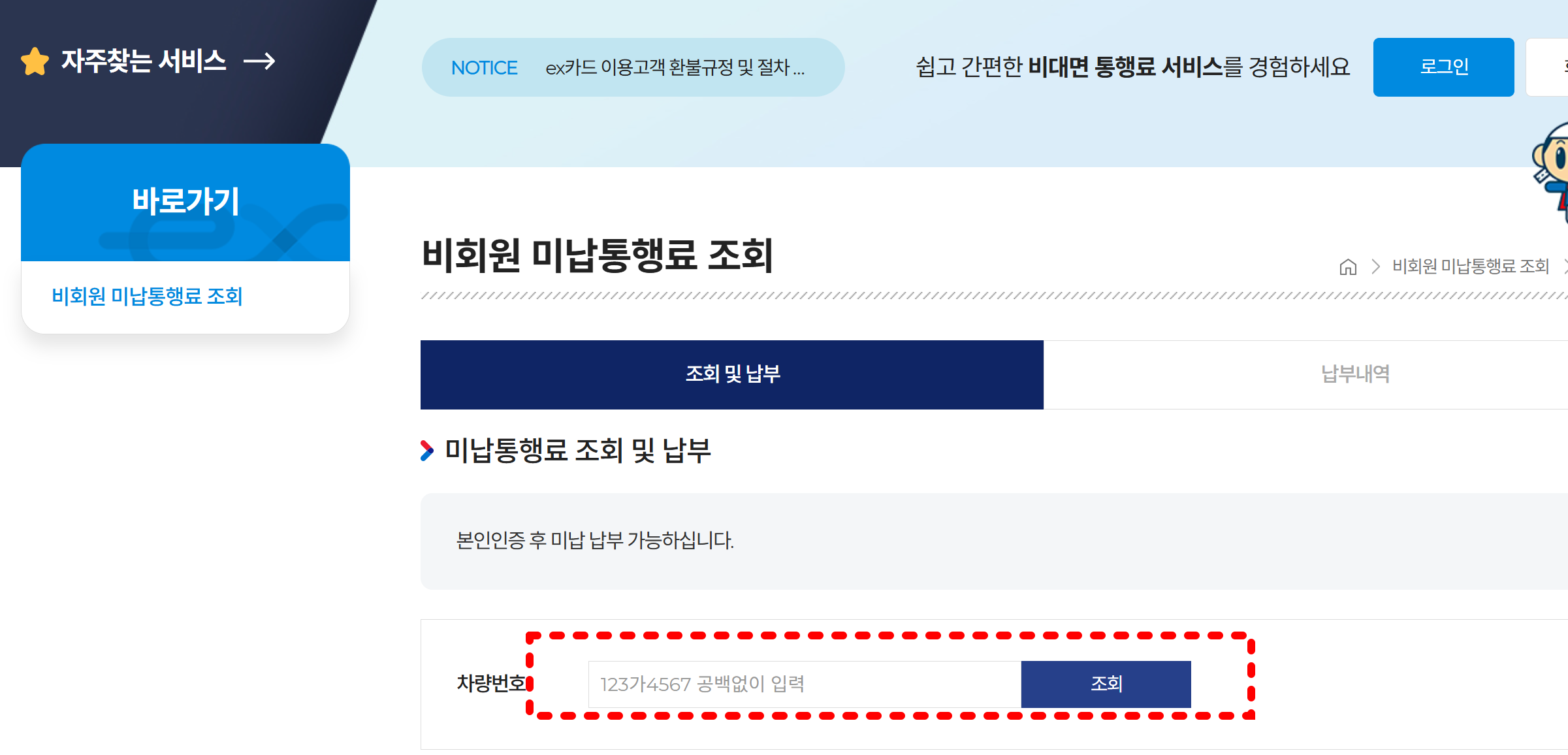 - 회원가입 없이도 차량번호만 입력하면 미납 내역을 바로 조회할 수 있습니다.