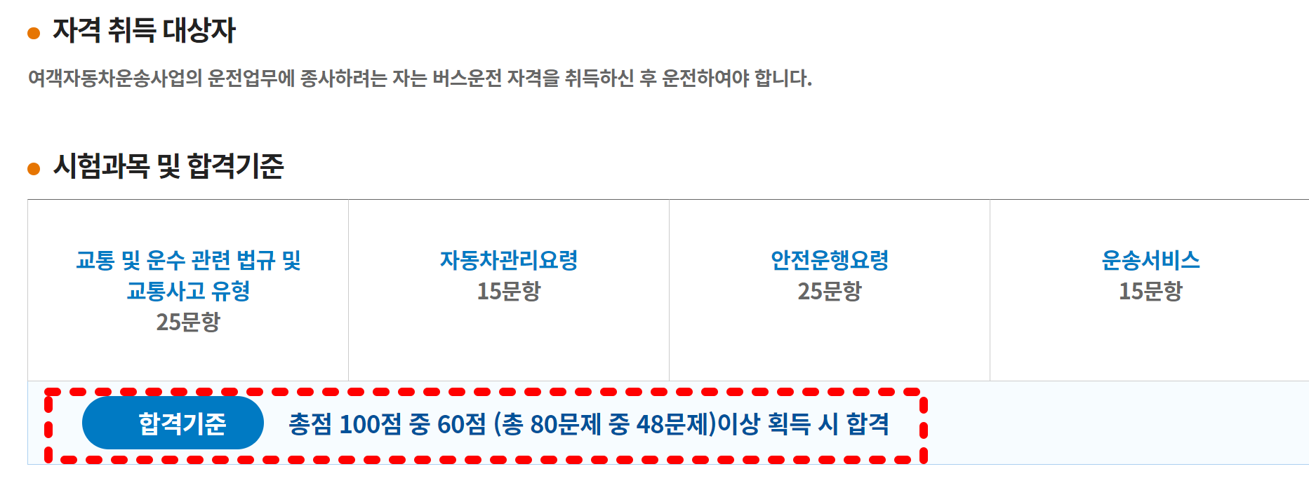 위와 같은 모든 조건을 만족해야만 버스운전자격시험에 응시할 수 있습니다.