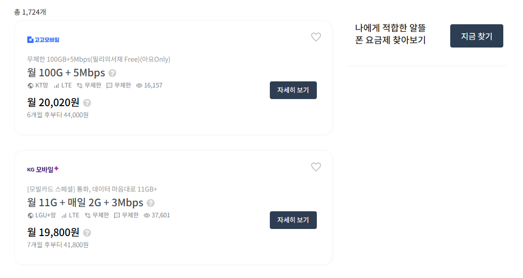 • 알뜰폰 요금제 비교 사이트 조회하기