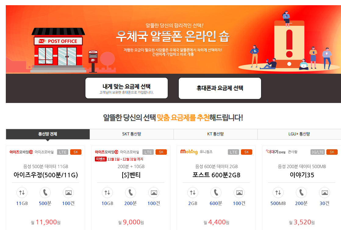 4. 우체국 알뜰폰: 오프라인 상담과 가입 가능.