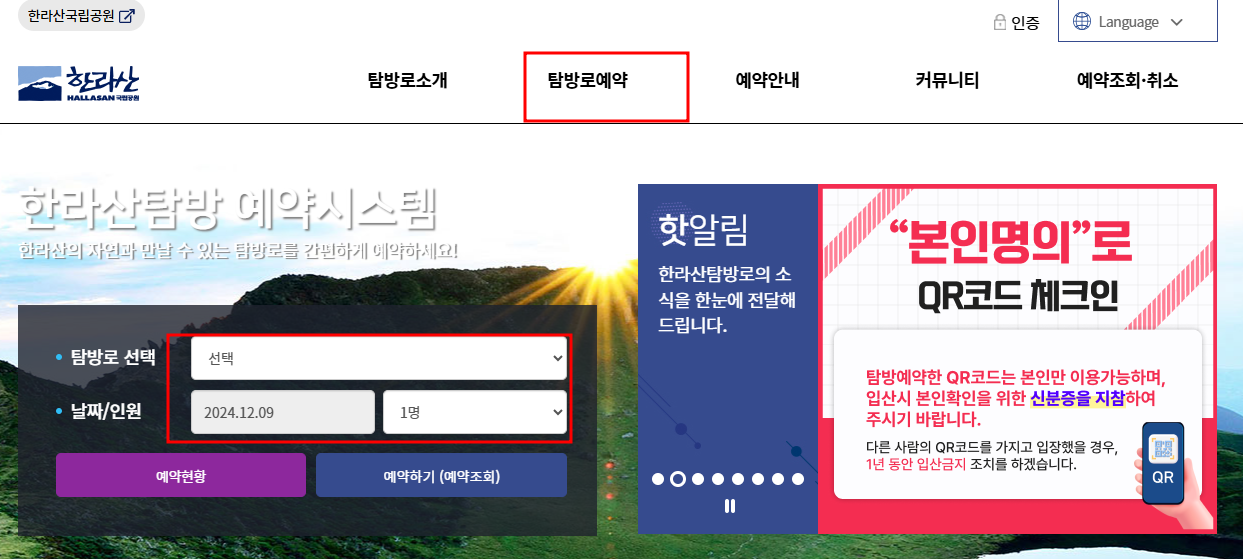 한라산 탐방 예약 방법