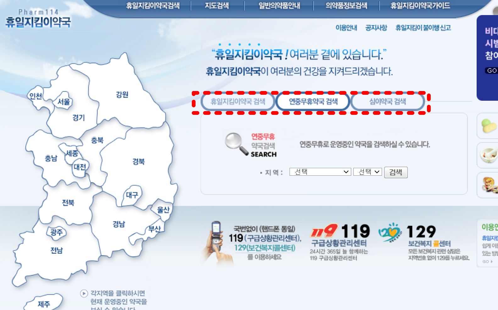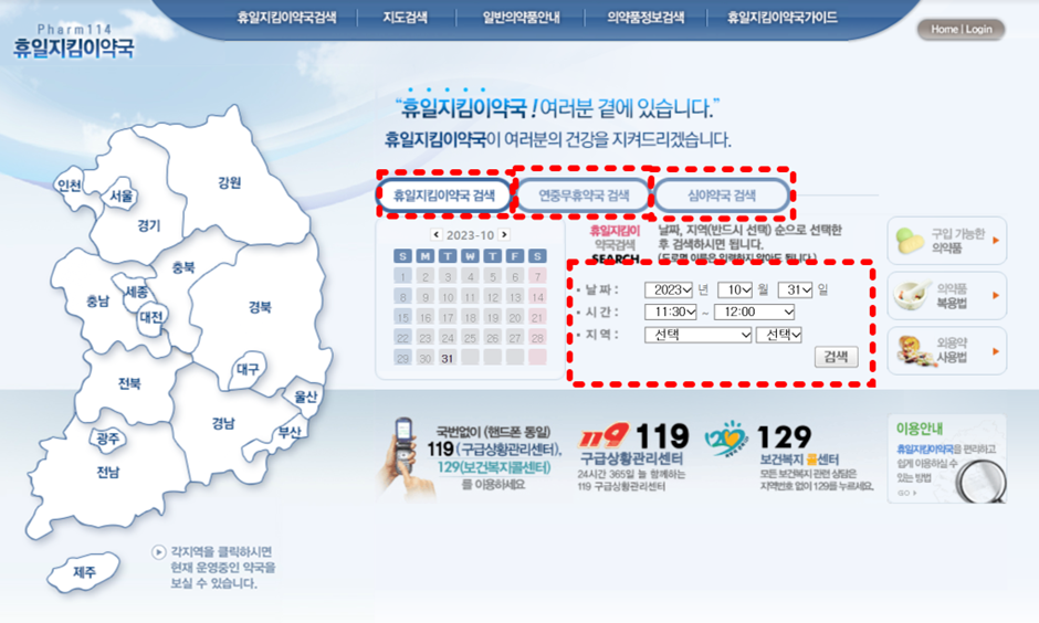 휴일 약국 찾는 방법